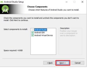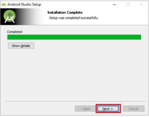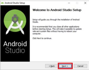 Setelah jendela Android Studio Setup terbuka, selanjutnya klik Next.
