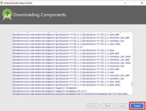 Setelah proses download selesai maka proses instalasi Android Studio telah selesai. Klik Finish.Setelah itu maka kita akan disambut dengan jendela baru Welcome to Android Studio.