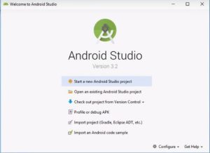 Setelah menginstall Android Studio, jendela awal yang terbuka yaitu seperti pada gambar berikut :
