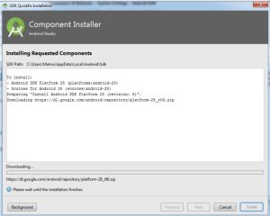 Klik ok untuk melakukan proses download dan install SDK. Pastikan komputer atau laptop terkoneksi dengan internet yang stabil.