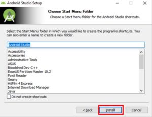 di Direktori C:\Program Files\Android\Android Studio. Untuk SDK nya akan diinstal di